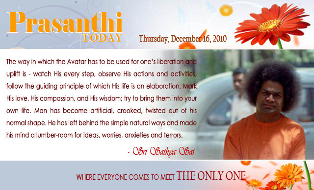 Sai Baba News - Sai Baba Teachings - Sai Travel log - Divine discourses - Sai Seva News - Avatar's Life and message PRASANTHI NEWS