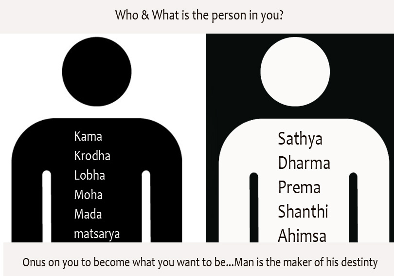 All that, to which, our conscience whispers a firm "No" are most undesirable and to all which our conscience hums a firm 'Yes' are the most desirable actions for man to follow. When man listens to his conscience, that is the Inner God, he moves in the right direction and thus pleases Him Who is The Indweller…and when he moves opposite, he is inflicting pain in Him, Whose directives he chooses to ignore. Every negaive thing, be it our lackadaisical attitude, actions that reeked of kama, krodha, lobha, moha, mada and matsarya are arrows, darts, shafts, missiles that hit the Divinity Within us writes Ms. Jullie Chaudhuri quoting references from Prasnottara Vahini reminding the children of Sathya Sai to awake, exult and herald in the Golden Age following Him studiously…Read on…
